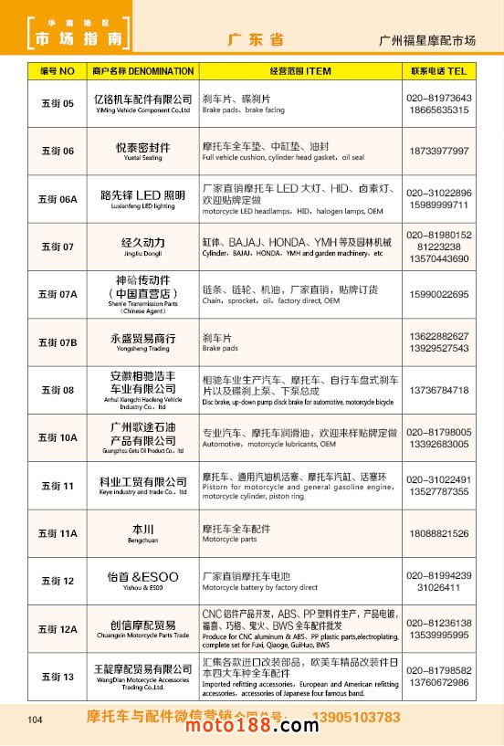 內104 廣州福星摩配市場商戶