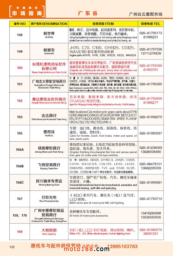 內(nèi)132 廣州市白云摩配市場商戶