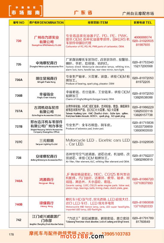 內178 廣州市白云摩配市場商戶