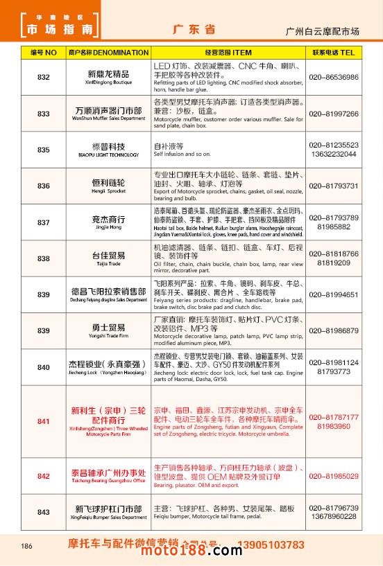 內186 廣州市白云摩配市場商戶