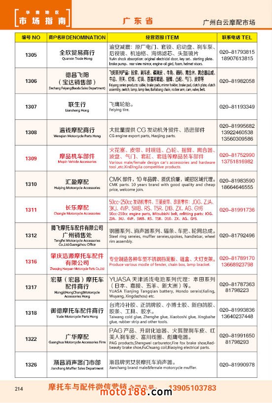 內214 廣州市白云摩配市場商戶