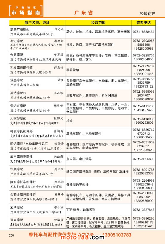 內(nèi)260 廣東省摩托車配件經(jīng)銷商戶