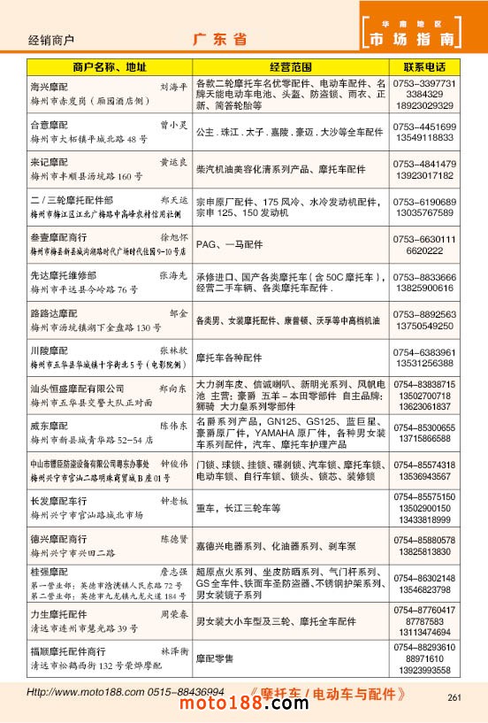 內(nèi)261 廣東省摩托車配件經(jīng)銷商戶