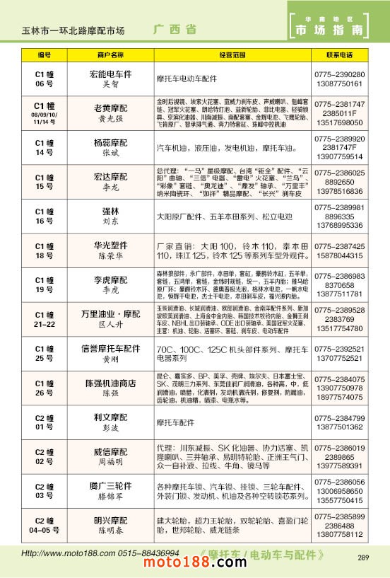 內289玉林市一環北路摩配市場