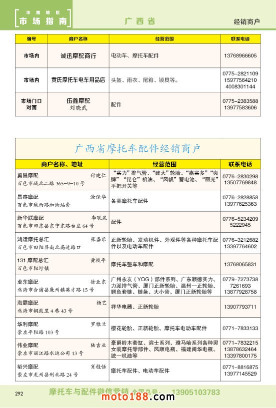 內292廣西省摩托車配件經銷商戶