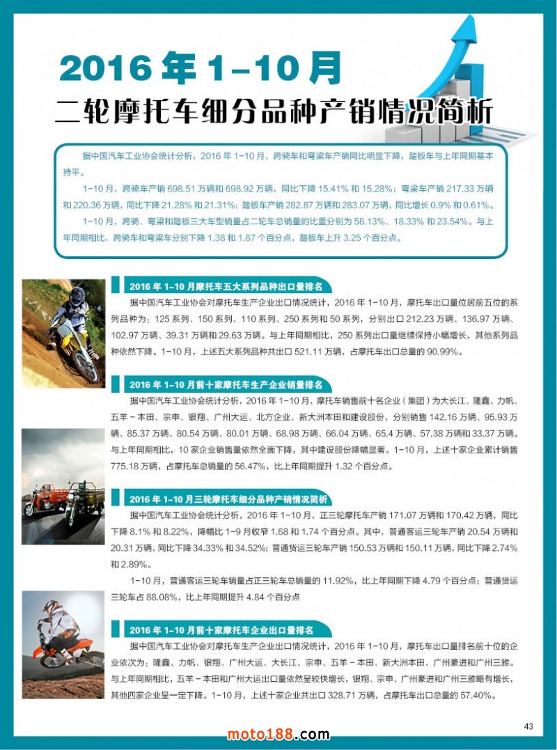 內43 2016年1-10月二輪摩托車細分品種產銷情況簡析