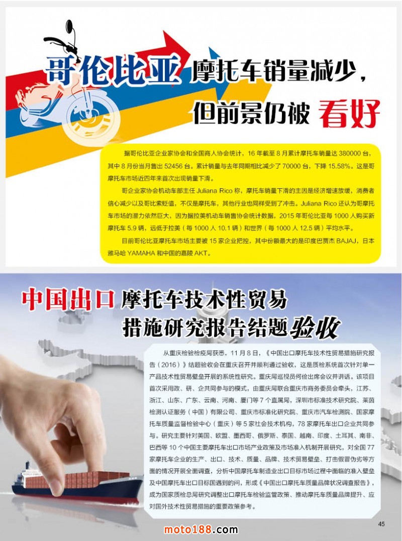 內45 哥倫比亞摩托車銷量減少,但前景仍被看好