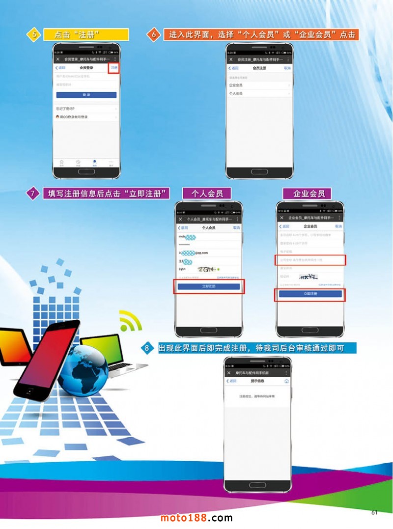 我們的網(wǎng)站全稱為:m.zjsoxnet.com,是摩托車配件行業(yè)第一門戶網(wǎng)站,不管用什么搜索引掣搜索,始終在第一頁(yè)面出現(xiàn),日訪問量平均三千多次,移動(dòng)終端有時(shí)占比超過50%,實(shí)際有效受眾遠(yuǎn)遠(yuǎn)超過微信,因而我們請(qǐng)軟件公司重新開發(fā)設(shè)計(jì)手機(jī)版moto188(《摩托車與配件》網(wǎng)站),目前該網(wǎng)站界面整潔、簡(jiǎn)單、易操作、易瀏覽,在任何一個(gè)終端發(fā)布信息,彼此互相都能看到,很好的解決了微信的功能限制,也給用戶更好的體驗(yàn)。