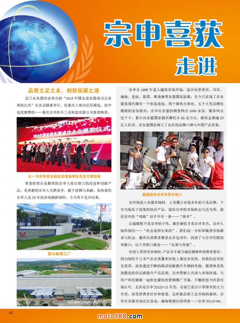 內(nèi)42 宗申喜獲2016年中國走進(jìn)東盟成功企業(yè)獎
