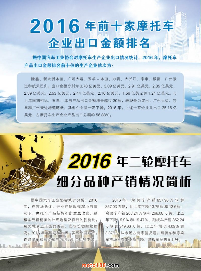 內(nèi)44 2016年前十家摩托車企業(yè)出口金額排名