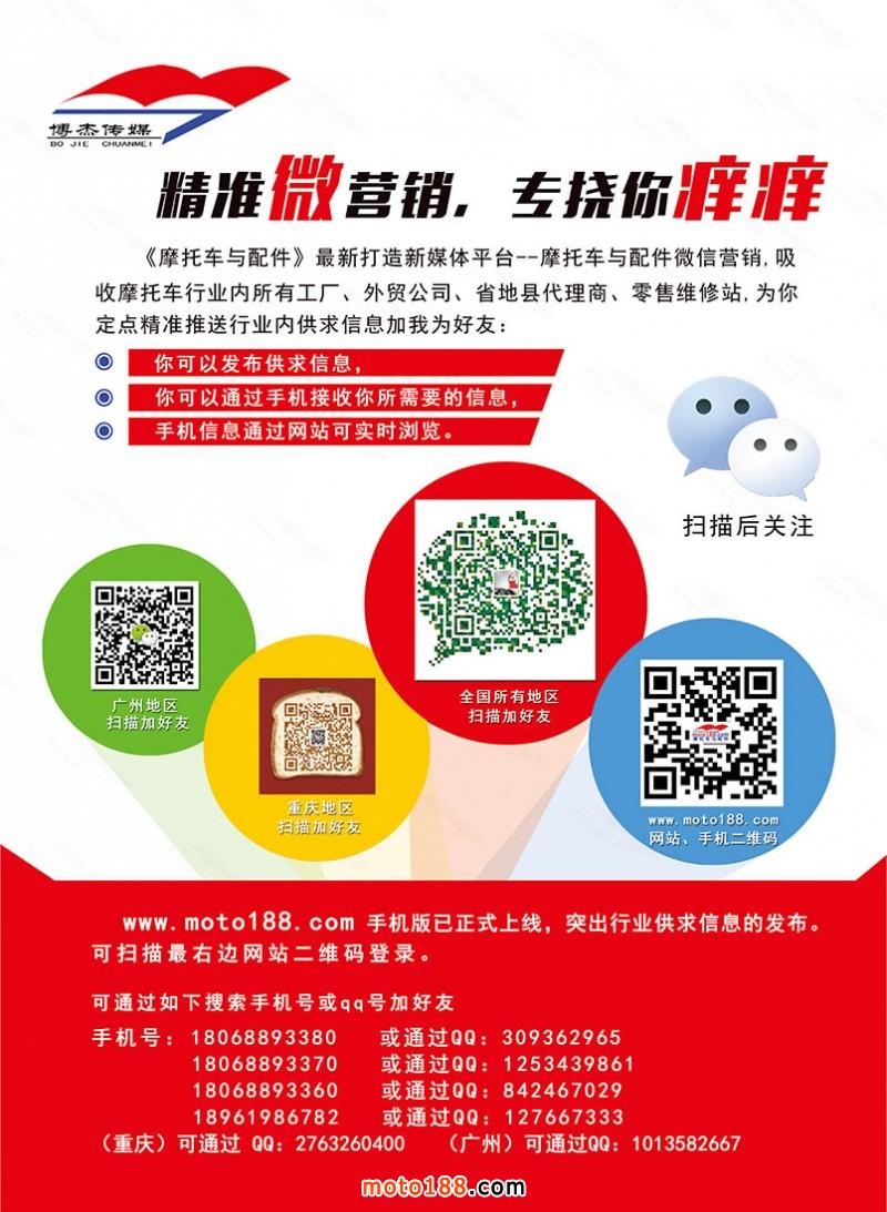 今年第73屆全國摩托車及配件展示交易會將在昆明召開,目前我們正在為會議進行緊張的忙碌中。今年在會議上我們提供的資料是《西南地區市場指南》《會刊》《摩托車與配件》第五期雜志,歡迎大家到6130展位來領取。