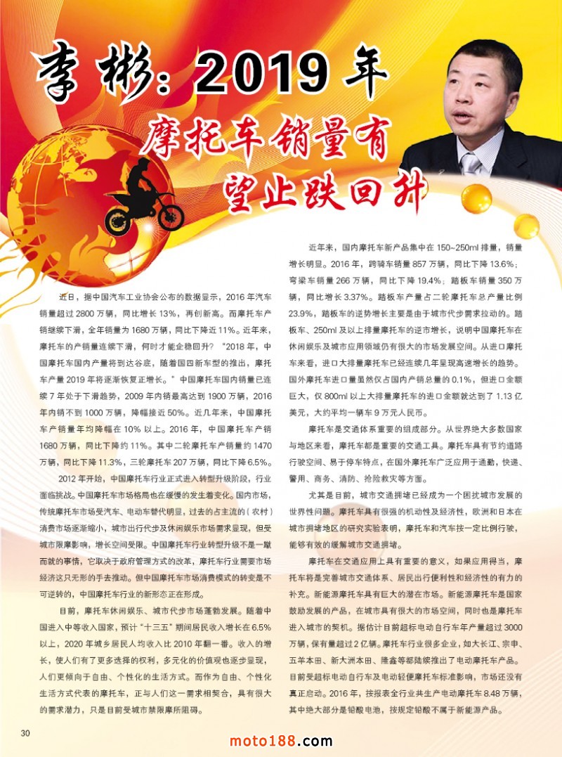 內30 李彬:2019年摩托車銷量有望止跌回升