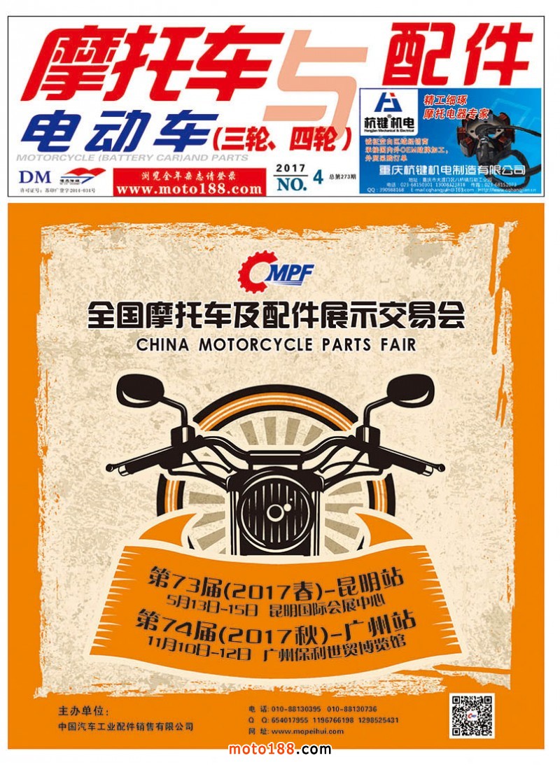 今年第73屆全國摩托車及配件展示交易會將在昆明召開,目前我們正在為會議進行緊張的忙碌中。今年在會議上我們提供的資料是《西南地區市場指南》《會刊》《摩托車與配件》第五期雜志,歡迎大家到6130展位來領取。