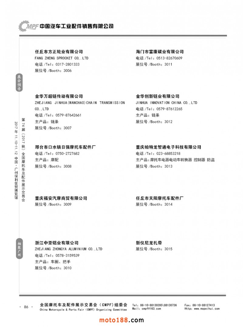 內(nèi)86 參展企業(yè)名錄