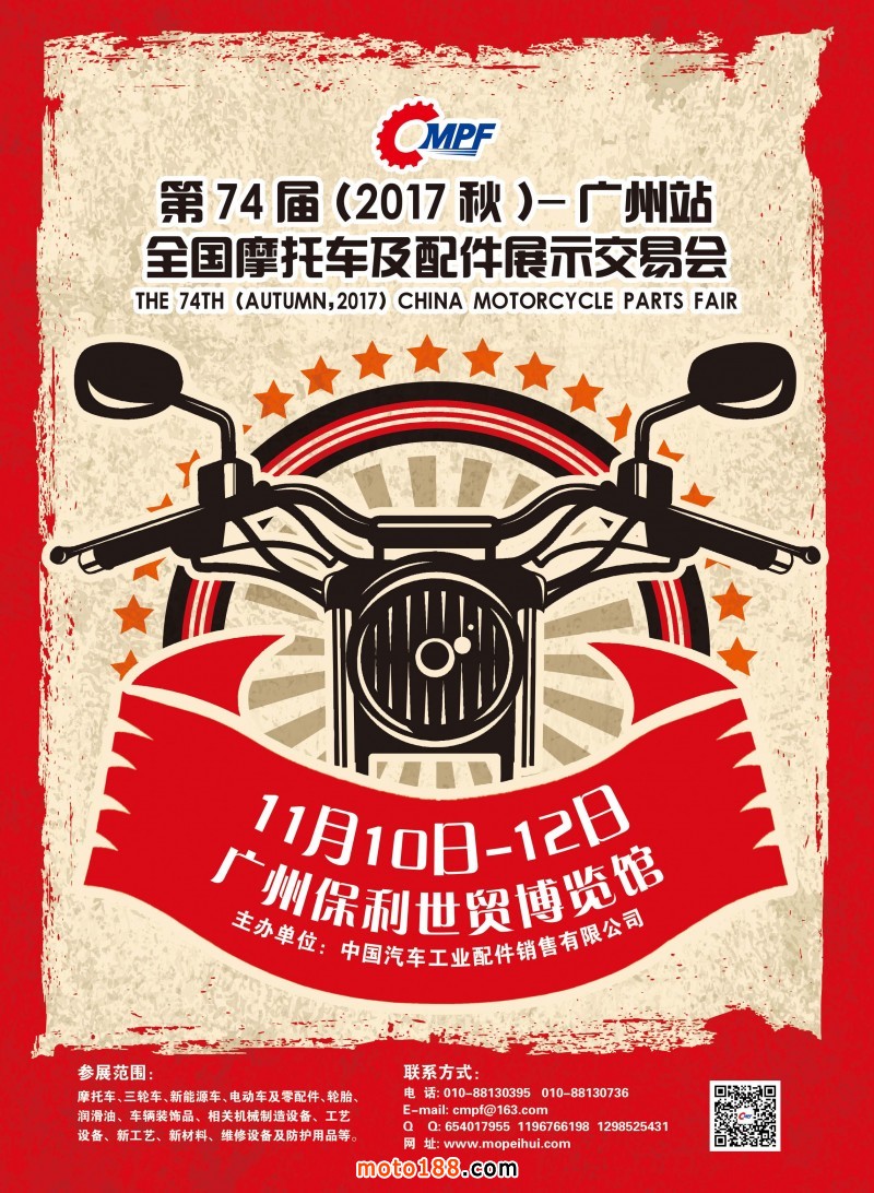 2017.6月《摩托車/電動車與配件》雜志,歡迎大家閱讀日期:2017-06-02 點擊:1295 查看原圖 全部展開![]() ![]() ![]() 封底 第74屆(2017秋)-廣州站全國摩托車及配件展示交易會