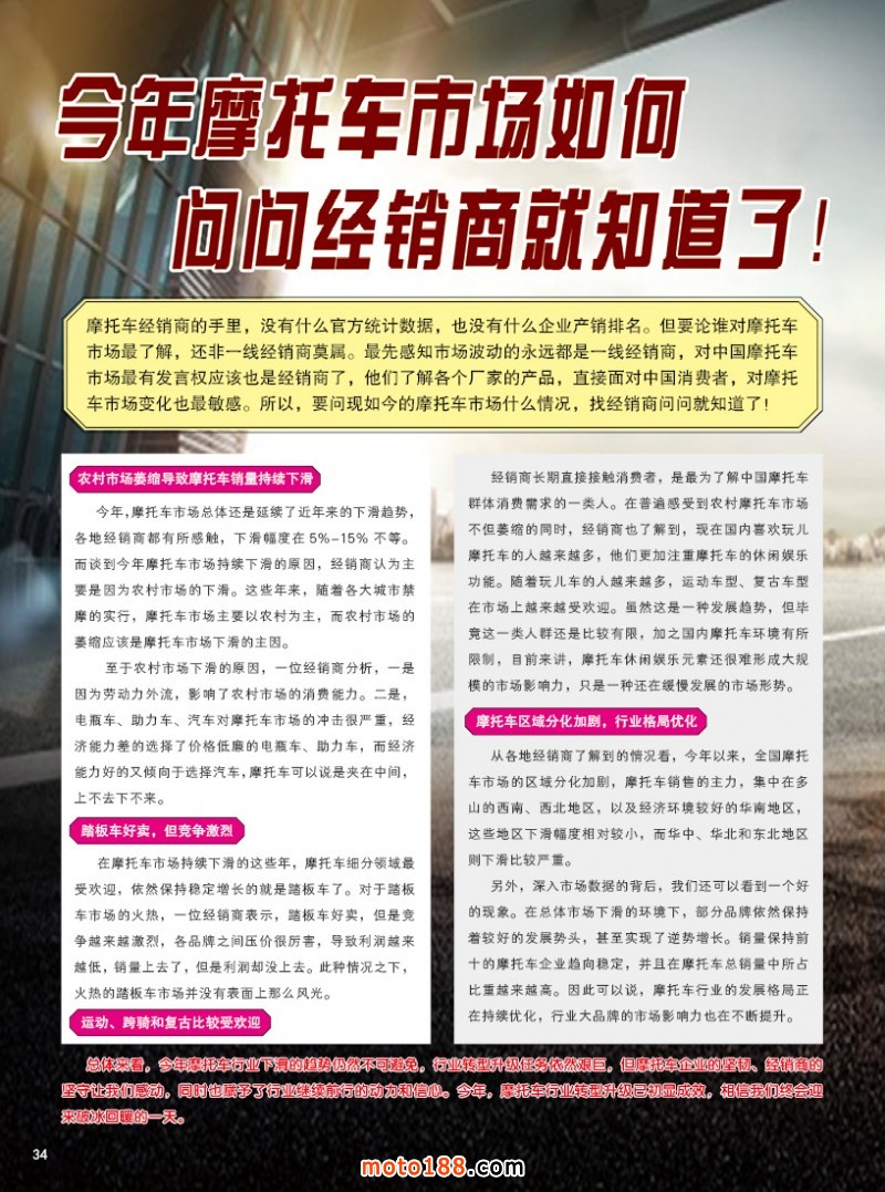 另外我們《摩托車與配件》雜志和微營銷新媒體都是行業獨一無二的,且運營模式貼近市場,為行業服務,效果明顯,我們希望有志于在新媒體行業有作為的企業和我們戰略合作,加快行業媒體發展的速度。具體什么形式合作,可詳談。