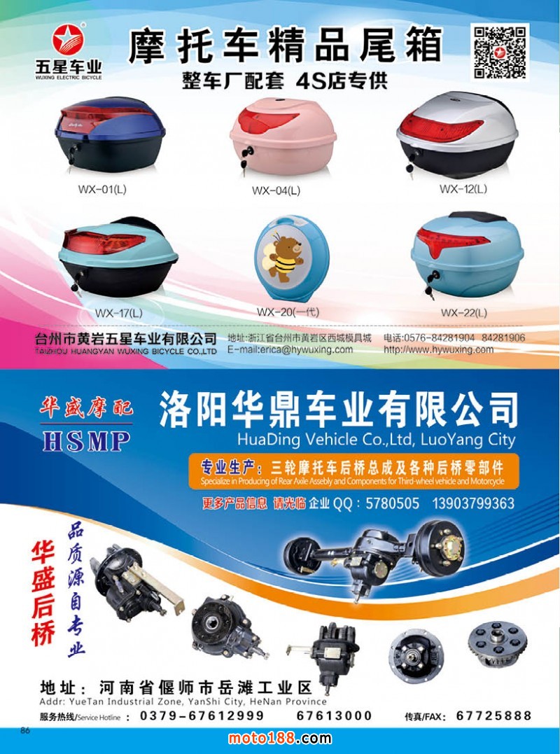 2017.7月《摩托車(chē)/電動(dòng)車(chē)與配件》雜志,歡迎大家閱讀日期:2017-06-29 點(diǎn)擊:1188 查看原圖 全部展開(kāi)![]() ![]() ![]() 內(nèi)86 臺(tái)州市黃巖五星車(chē)業(yè)有限公司