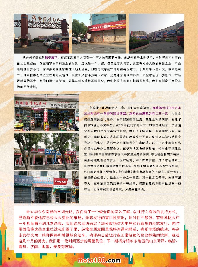 《外貿市場指南》發行對象:在廣州秋季全摩會首發,在明年春季全摩會繼續發行,全國所有的外貿企業、外商、全國所有的外貿摩配市場,目前需要在《中國摩配外貿市場指南》上做宣傳的企業十分踴躍,從計劃推出到正式操作不到一個月,已訂出一百五十個版面,我們爭取精心制作,確保準確性和適用性,將國內第一本外貿商業工具書做好。