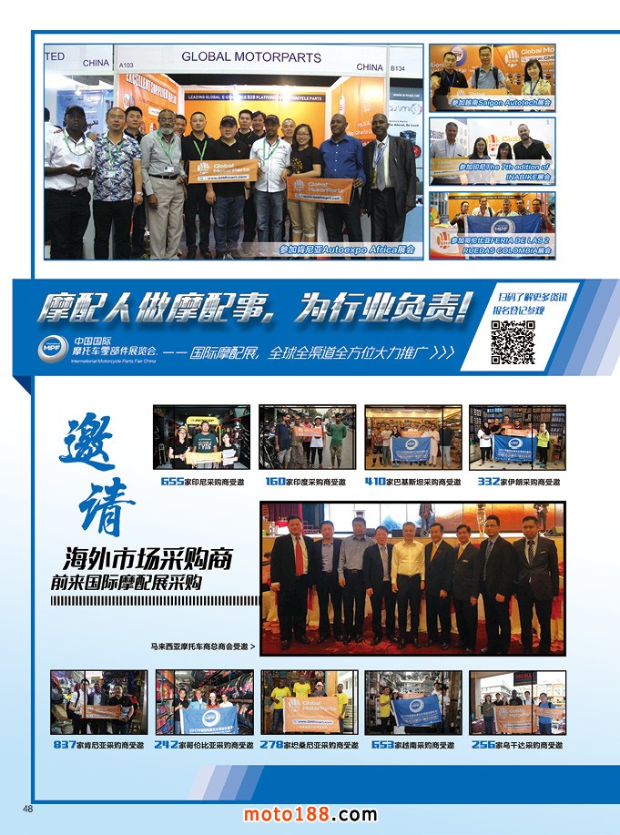 今年十一月份中汽全摩會繼續在廣州召開,為了做好外貿服務工作,抓住一帶一路走向世界的發展契機,我們將我們的外貿數據庫整理發布給業內人士,在廣州全摩會正式推出首版《中國摩配外貿市場指南》,用中英文雙語出版,正度16開,尺寸為266×181毫米。
