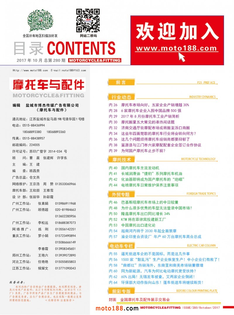 2017.10月《摩托車/電動車與配件》雜志,歡迎大家閱讀