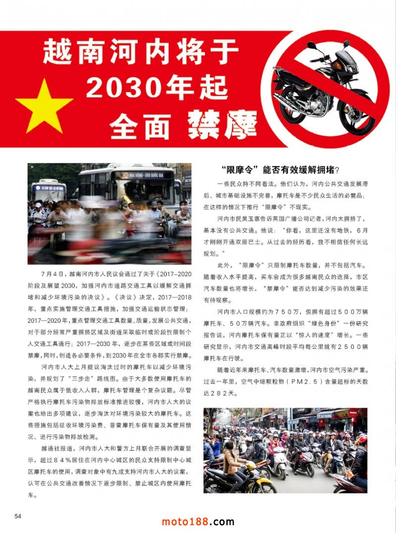 內54 越南河內將于2030年起全面禁摩