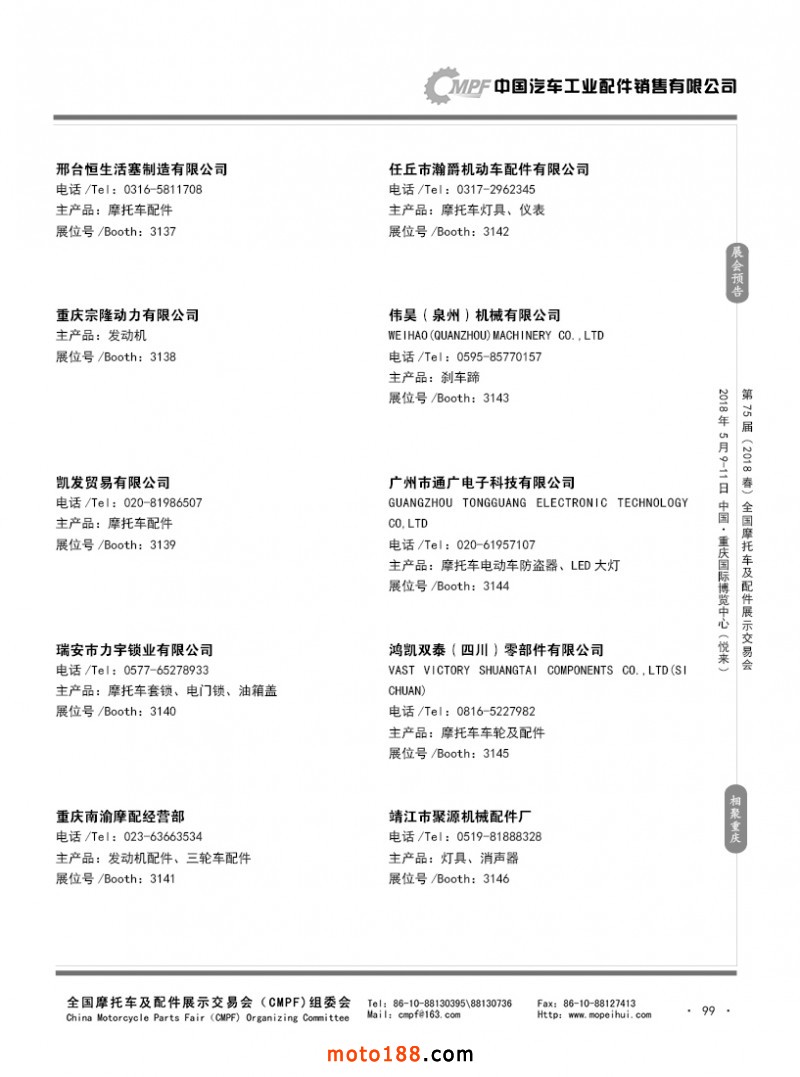內99 第74屆(2017秋)全國摩托車及配件展示交易會-廣州站參展企業名錄
