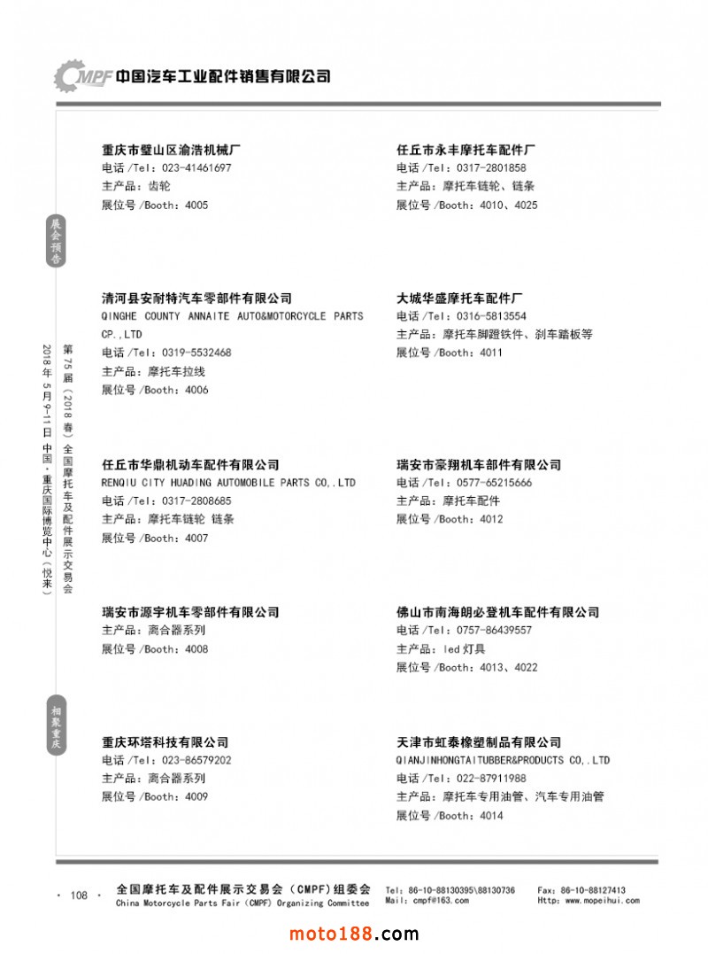 內108 第74屆(2017秋)全國摩托車及配件展示交易會-廣州站參展企業名錄