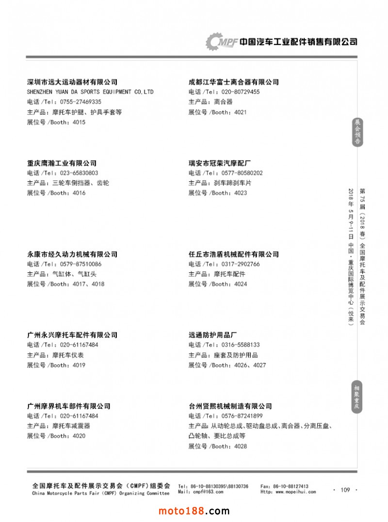 內(nèi)109 第74屆(2017秋)全國摩托車及配件展示交易會-廣州站參展企業(yè)名錄