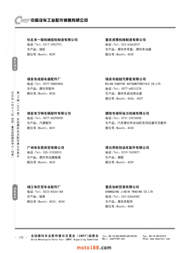 內110 第74屆(2017秋)全國摩托車及配件展示交易會-廣州站參展企業名錄