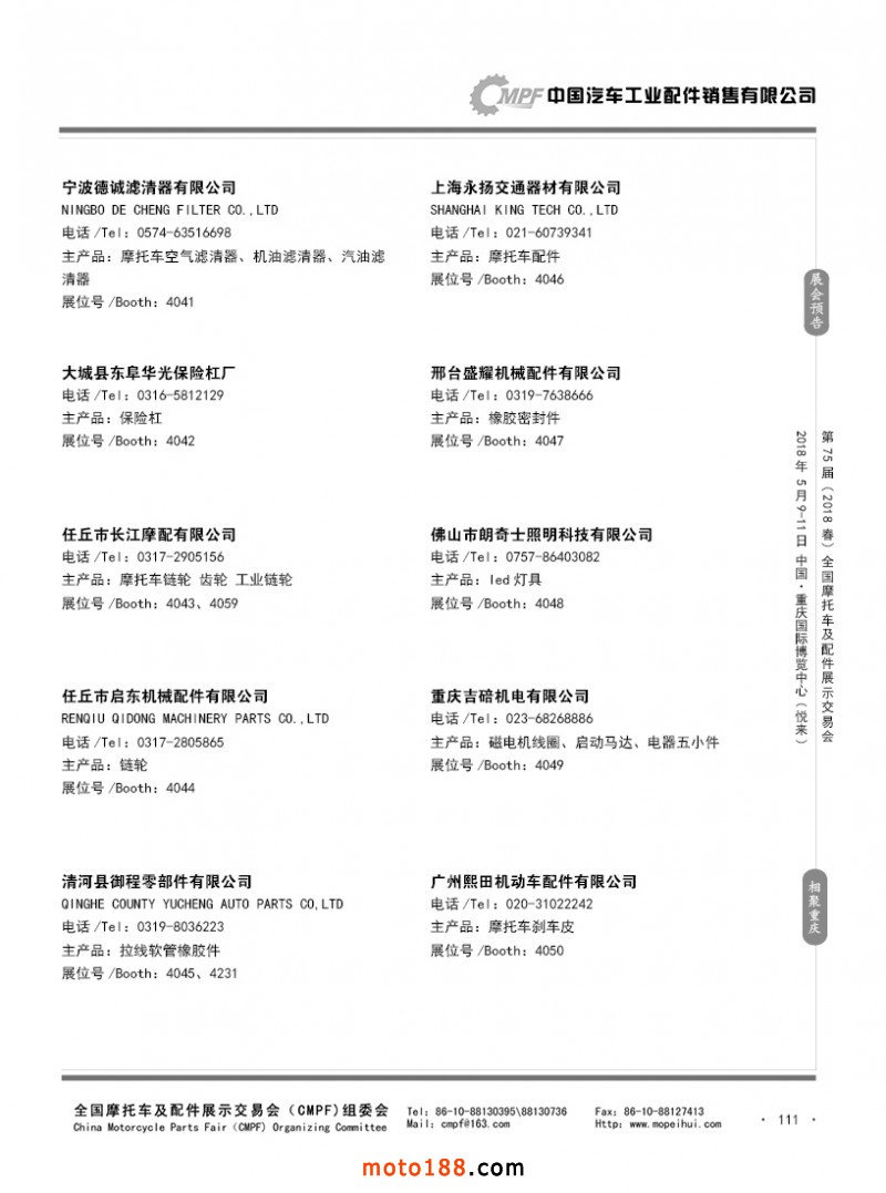 內111 第74屆(2017秋)全國摩托車及配件展示交易會-廣州站參展企業名錄