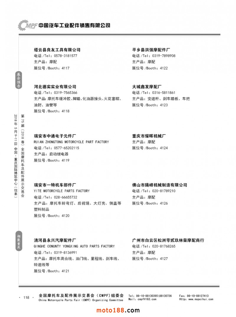 內118 第74屆(2017秋)全國摩托車及配件展示交易會-廣州站參展企業名錄