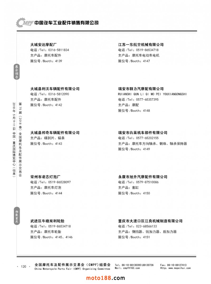 內120 第74屆(2017秋)全國摩托車及配件展示交易會-廣州站參展企業名錄