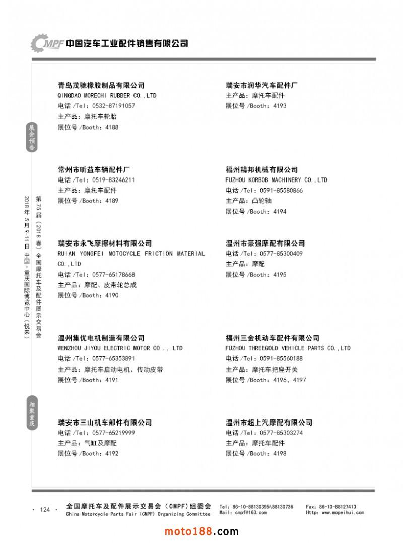 內124 第74屆(2017秋)全國摩托車及配件展示交易會-廣州站參展企業名錄