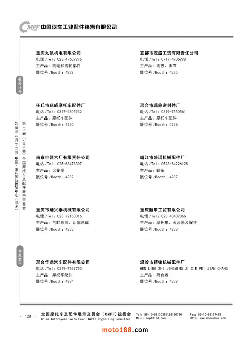 內(nèi)128 第74屆(2017秋)全國(guó)摩托車及配件展示交易會(huì)-廣州站參展企業(yè)名錄