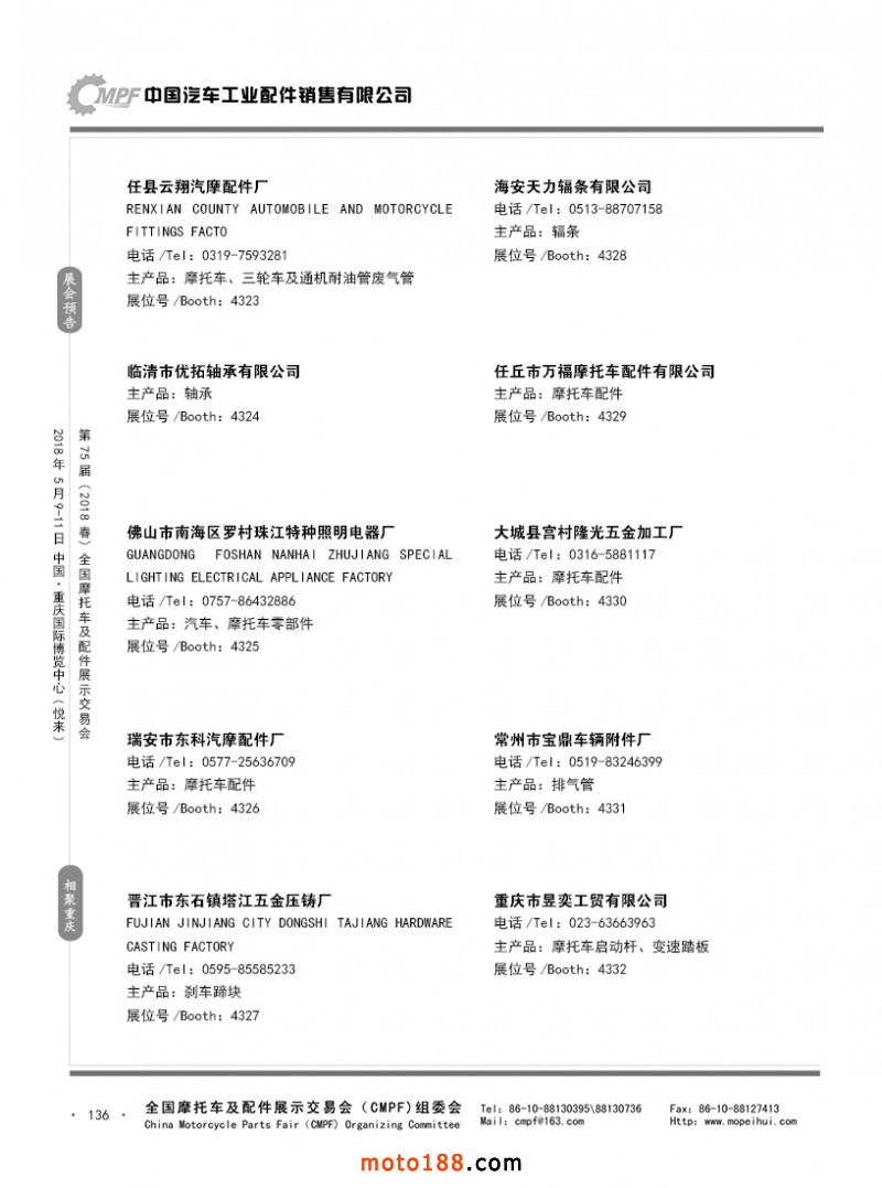 內(nèi)136 第74屆(2017秋)全國(guó)摩托車(chē)及配件展示交易會(huì)-廣州站參展企業(yè)名錄