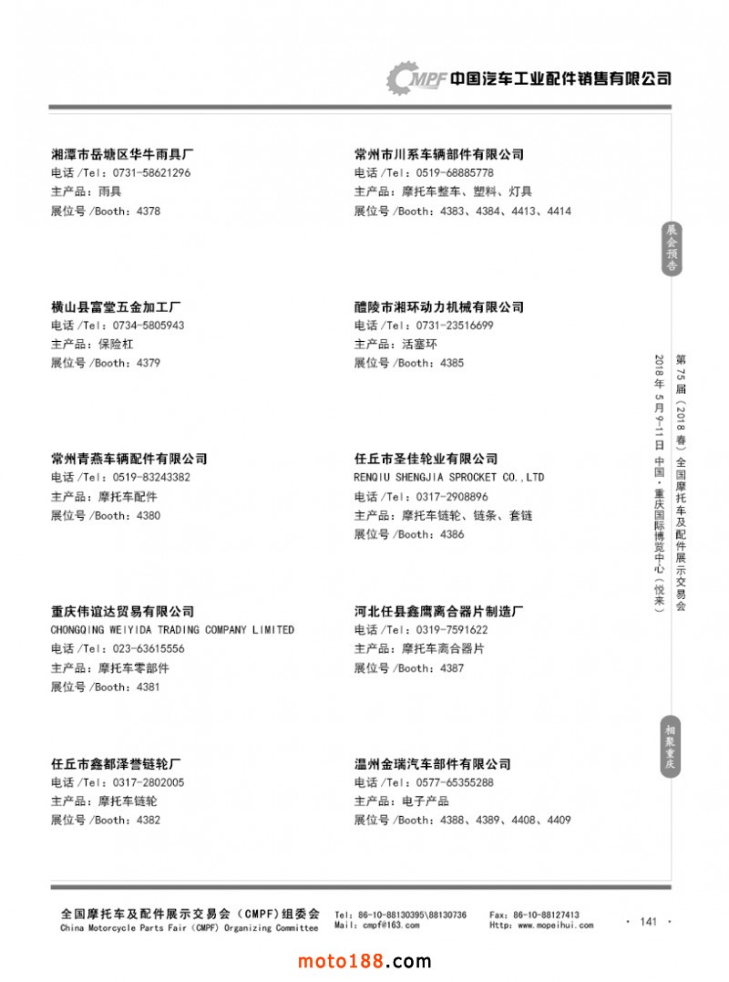 內(nèi)141 第74屆(2017秋)全國摩托車及配件展示交易會(huì)-廣州站參展企業(yè)名錄