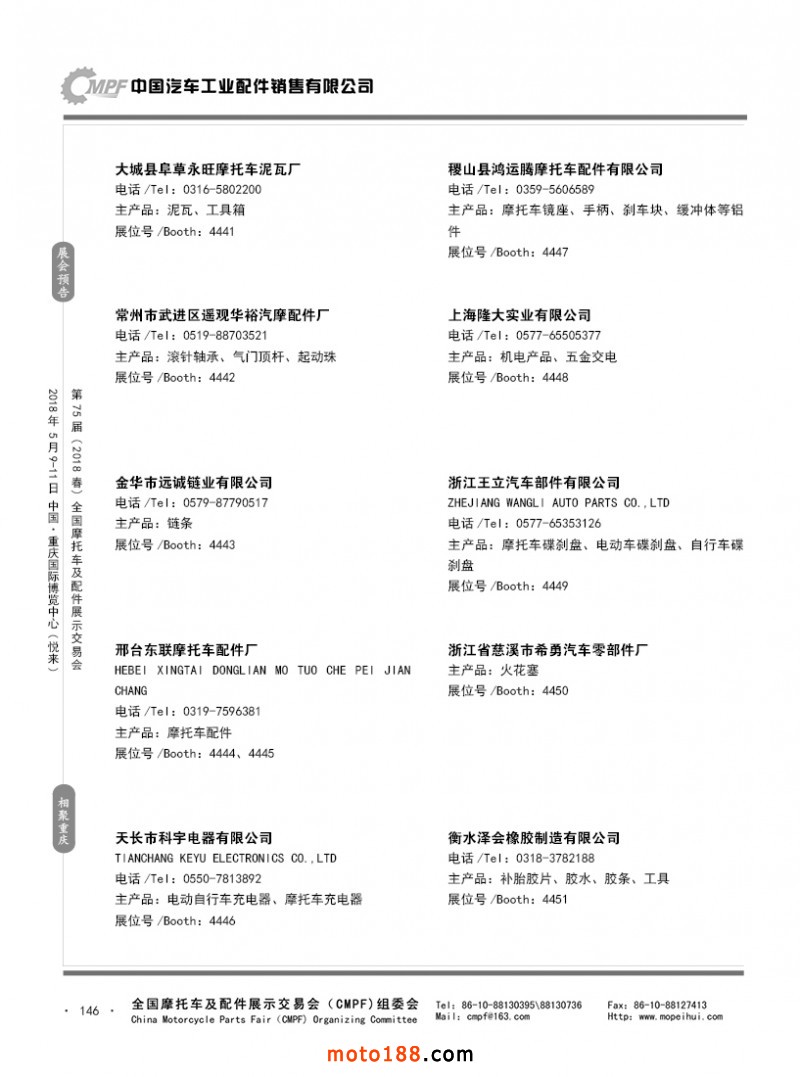 內(nèi)146 第74屆(2017秋)全國摩托車及配件展示交易會-廣州站參展企業(yè)名錄