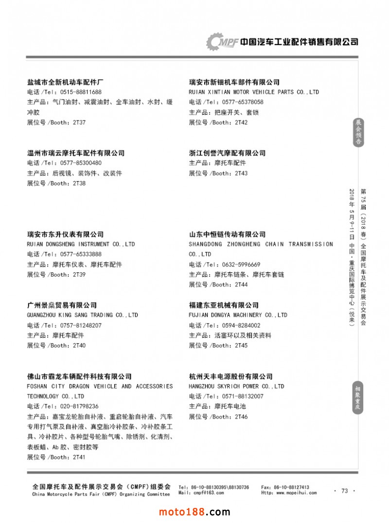 內73 第74屆(2017秋)全國摩托車及配件展示交易會-廣州站參展企業名錄
