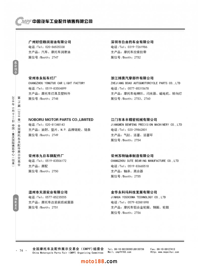 內74 第74屆(2017秋)全國摩托車及配件展示交易會-廣州站參展企業名錄