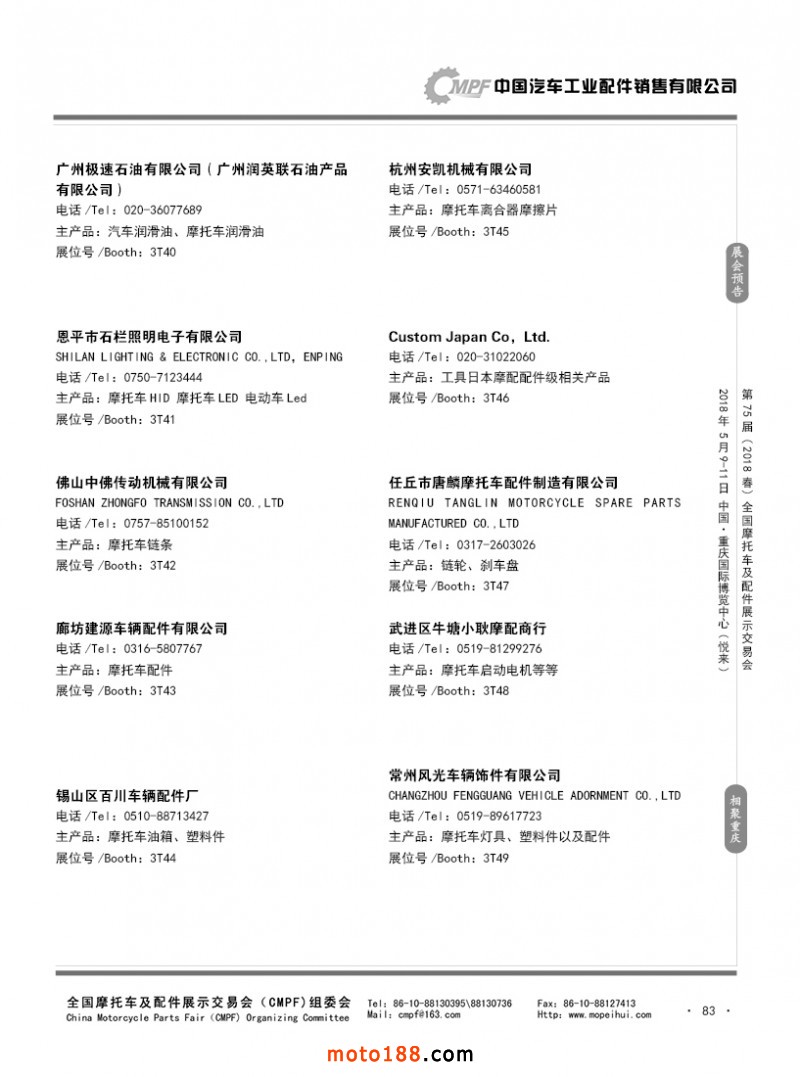 內(nèi)83 第74屆(2017秋)全國(guó)摩托車(chē)及配件展示交易會(huì)-廣州站參展企業(yè)名錄