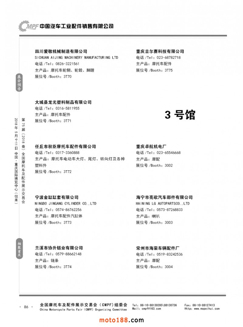 內(nèi)86 第74屆(2017秋)全國摩托車及配件展示交易會(huì)-廣州站參展企業(yè)名錄