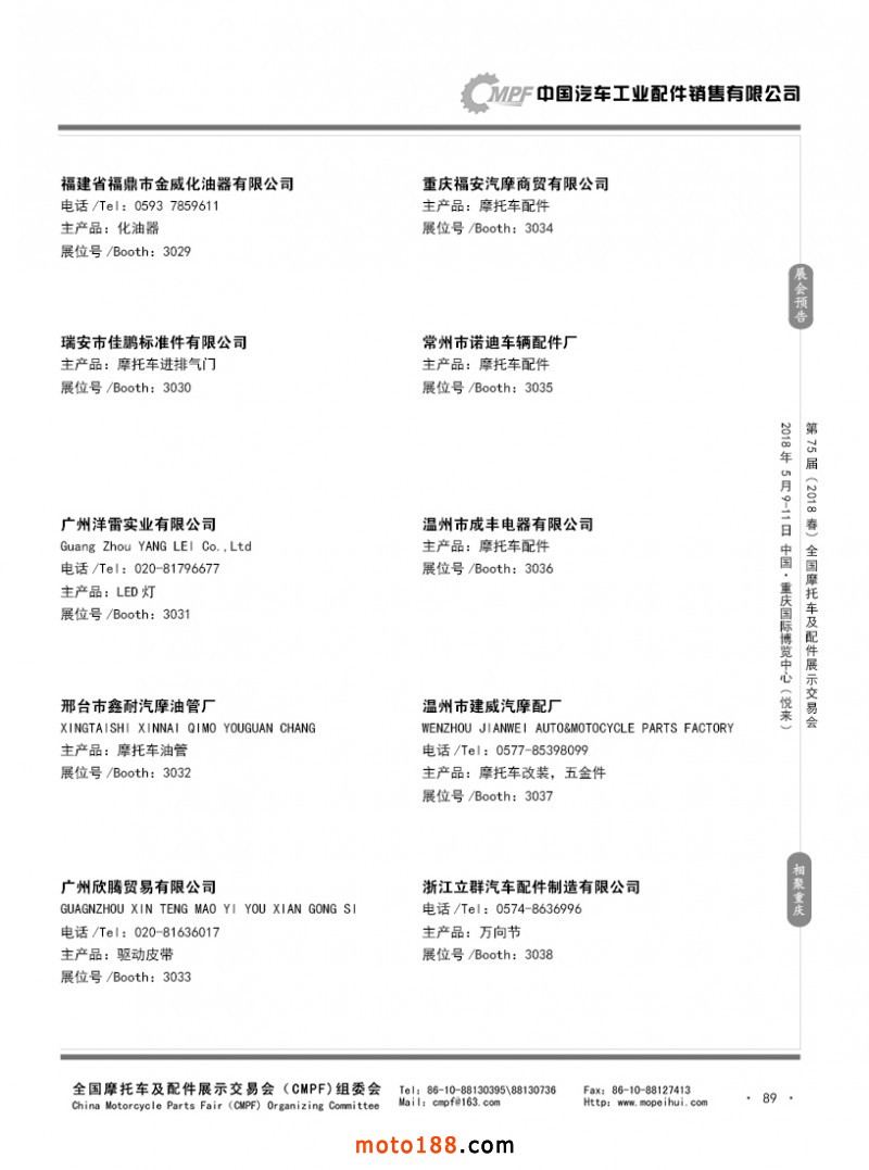 內89 第74屆(2017秋)全國摩托車及配件展示交易會-廣州站參展企業名錄