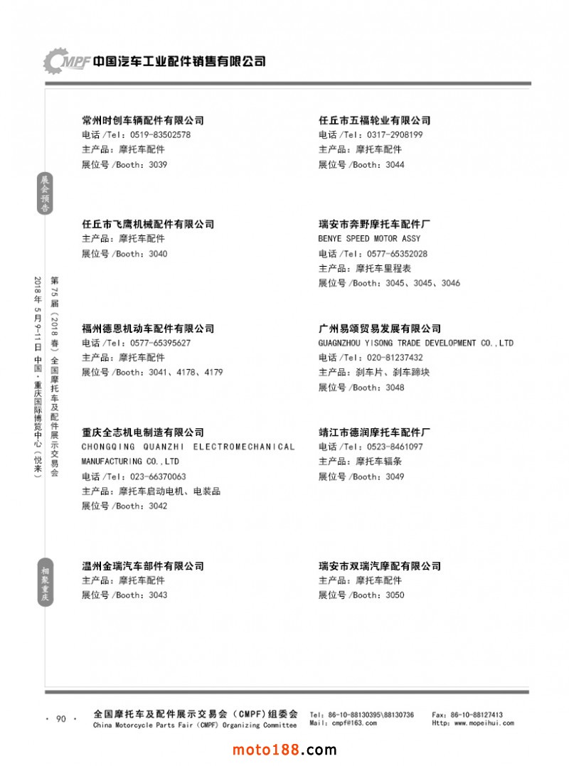 內90 第74屆(2017秋)全國摩托車及配件展示交易會-廣州站參展企業名錄