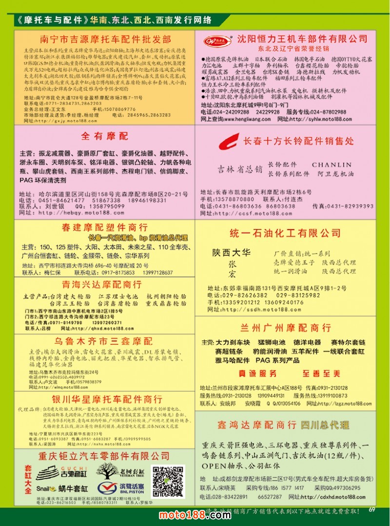 國內(nèi)首本中英文雙語《中國摩配外貿(mào)市場指南》,為從事外貿(mào)的企業(yè)提供了工具。這本書在廣州秋季全摩會(huì)上首發(fā)。還將參加明年的江門和重慶春季全摩會(huì)。歡迎行業(yè)朋友帶上名片或者手機(jī)掃二維碼,到4079展位來領(lǐng)取《中國摩配外貿(mào)市場指南》和《摩托車與配件》11期雜志。