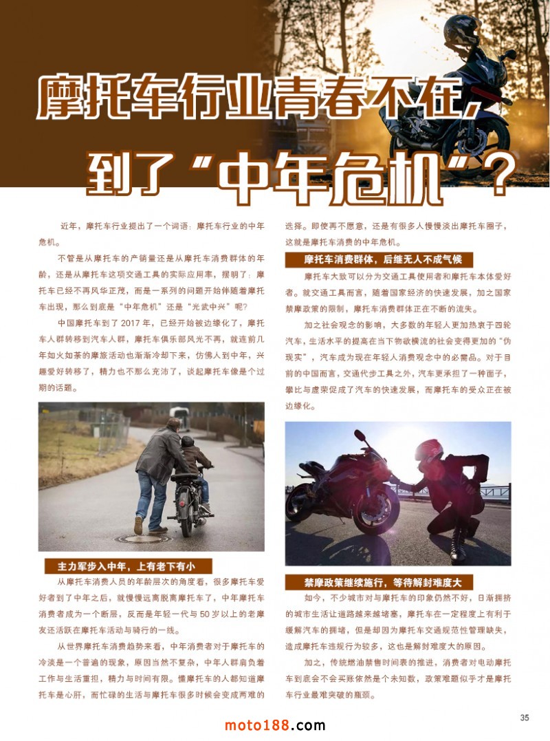 2018.3月《摩托車/電動(dòng)車與配件》雜志,歡迎大家閱讀日期:2018-03-06 點(diǎn)擊:1329 查看原圖 全部展開![]() ![]() ![]() 內(nèi)35 摩托車行業(yè)青春不在,到了“中年危機(jī)”?