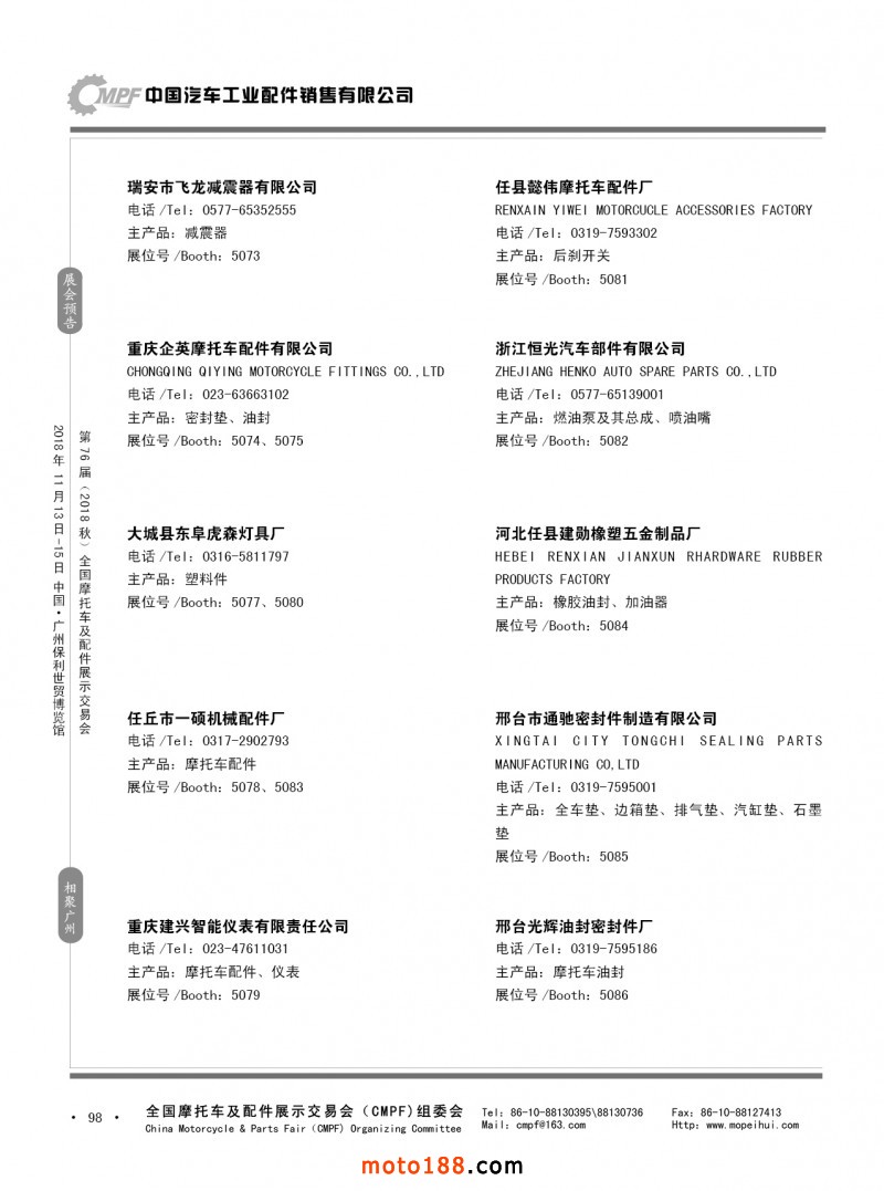 內(nèi)98 第75屆(2018春)全國摩托車及配件展示交易會-重慶站參展企業(yè)信息
