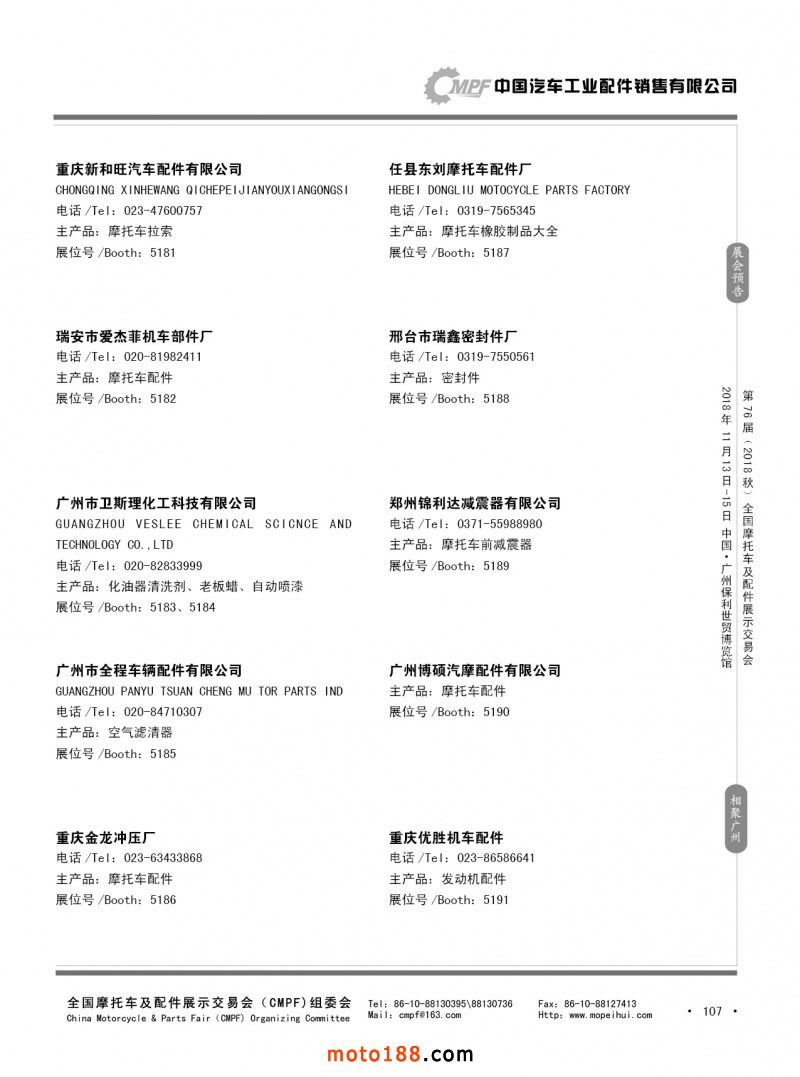 內107 第75屆(2018春)全國摩托車及配件展示交易會-重慶站參展企業信息