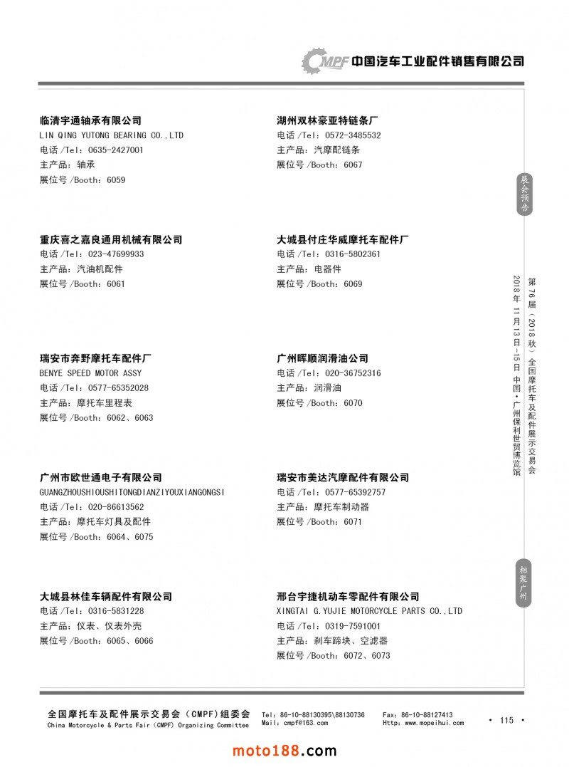 內115 第75屆(2018春)全國摩托車及配件展示交易會-重慶站參展企業信息