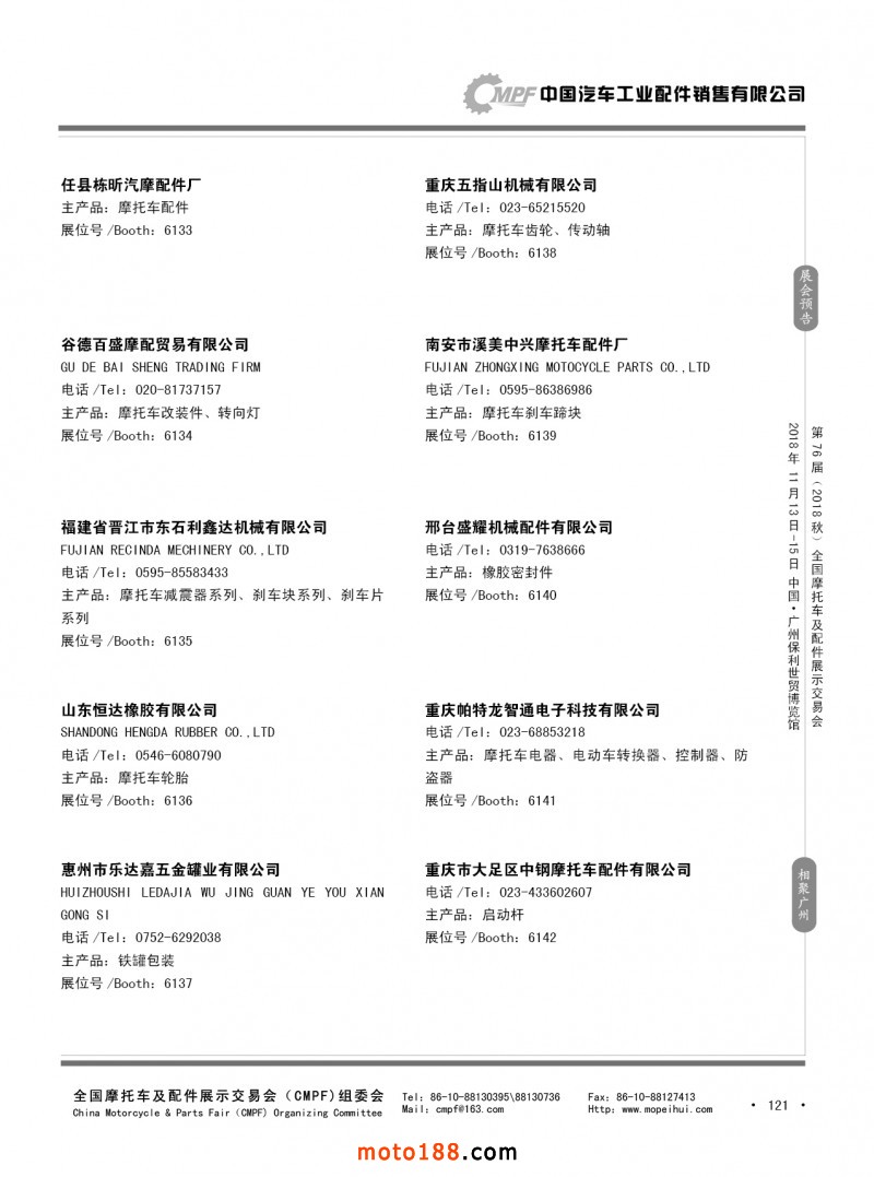 內121 第75屆(2018春)全國摩托車及配件展示交易會-重慶站參展企業信息