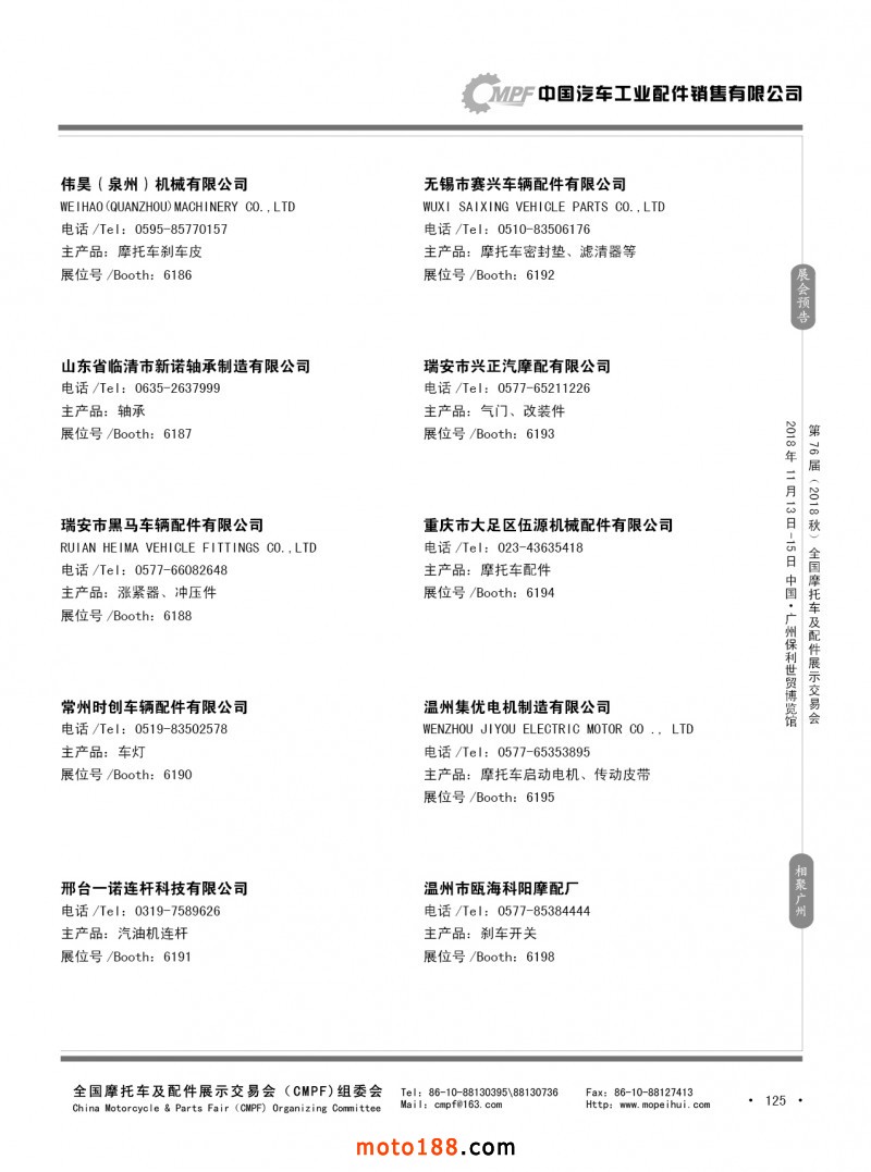 內(nèi)125 第75屆(2018春)全國(guó)摩托車及配件展示交易會(huì)-重慶站參展企業(yè)信息